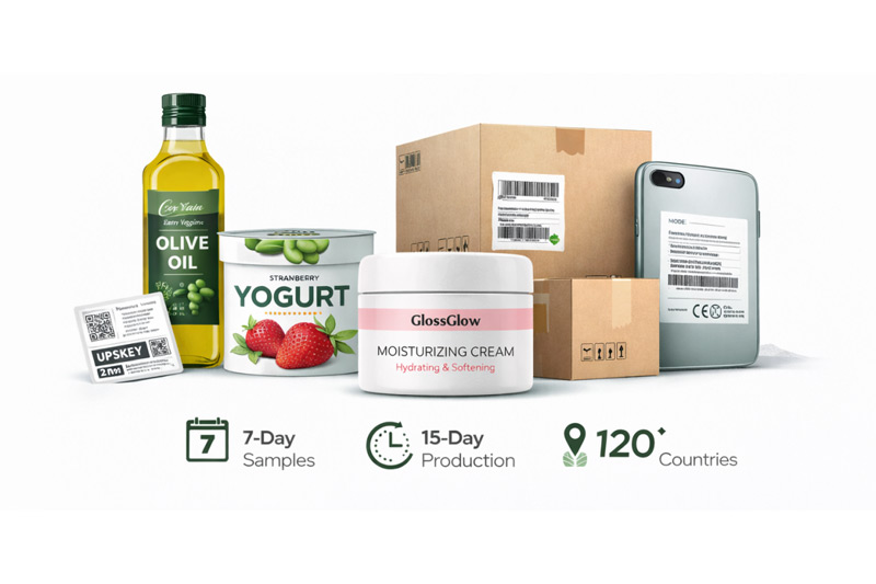 Custom label projects successfully completed for the food,cosmetics, electronics, and logistics industries.